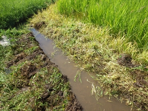 この水路の終末に田んぼが有るんで水当たりを良くする為に掃除をします。