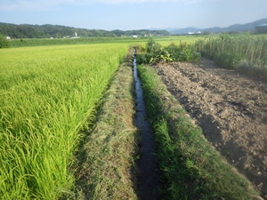 農薬不使用米 両側の圃場