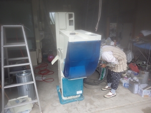 灯油を入れて乾燥機の確認をします