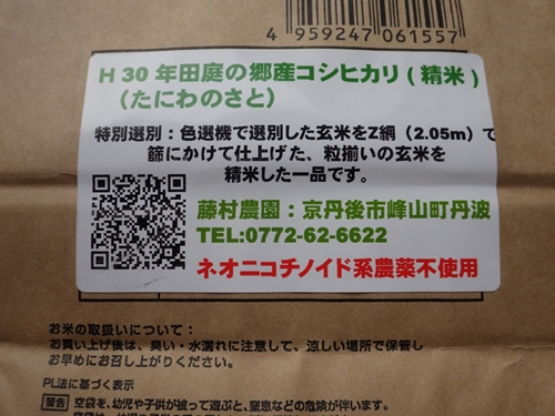 令和2年京丹後産コシヒカリ新米出来上がりました。